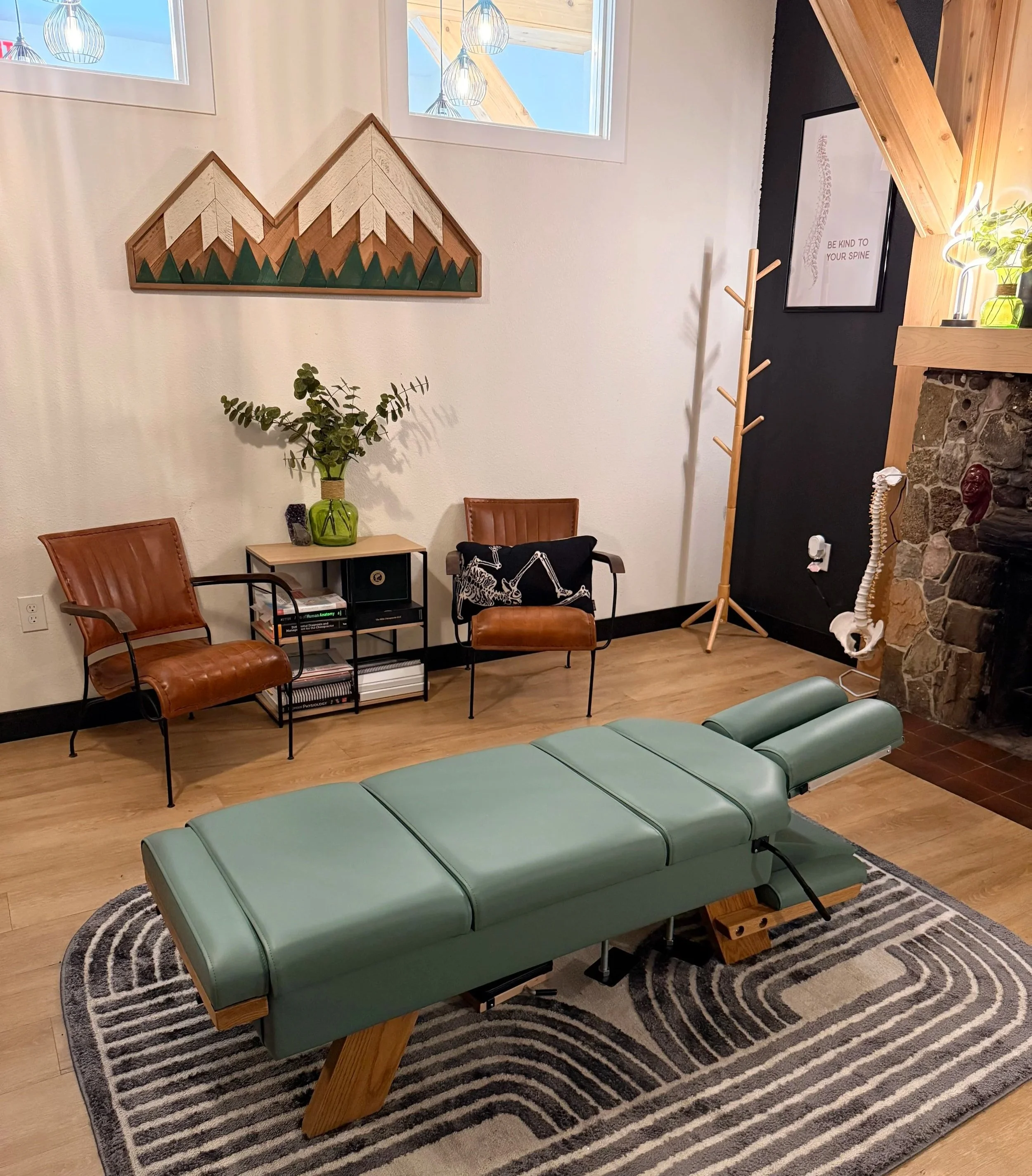 Chiropractic care is provided in a calm, relaxing, nontraditional office setting within a fully private, one-room suite. The space is thoughtfully designed to support patients of all ages and stages of life, featuring a stationary chiropractic table appropriate for all populations. There is plenty of room for a support person to attend your visit, and toys are available to help keep children comfortable and engaged during appointments.