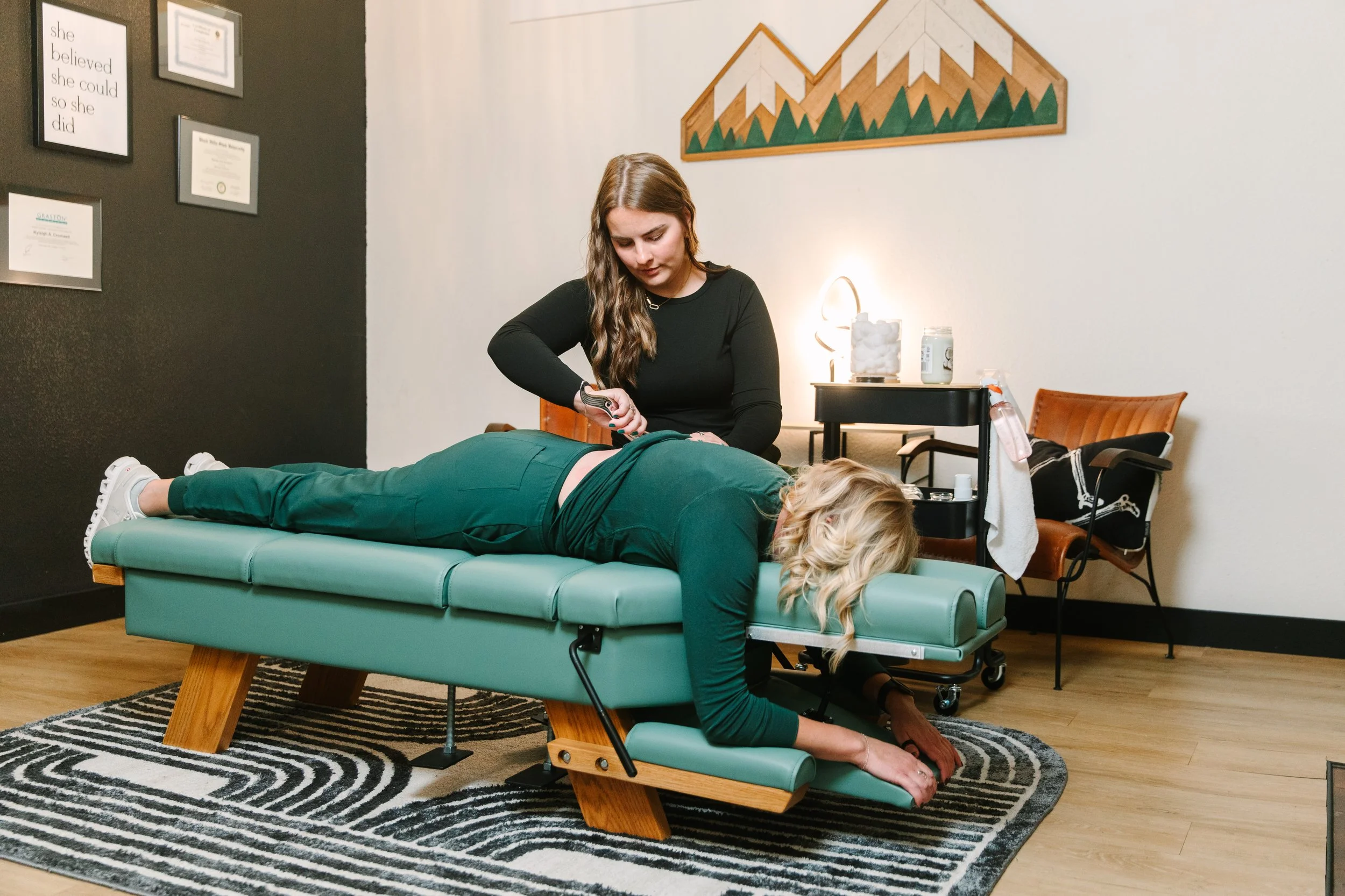 IASTM is a soft tissue treatment modality designed to identify and treat muscle restrictions, scar tissue, and areas of altered movement. By applying controlled pressure with specialized instruments, IASTM promotes circulation, and stimulated tissue remodeling to support improved flexibility, pain reduction and faster recovery.